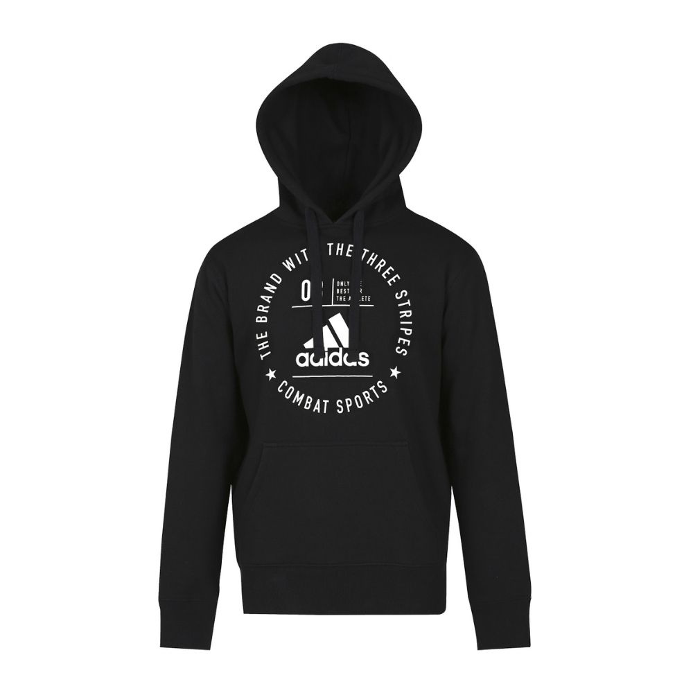 Blusa de moletom Adidas com capuz, muito estilo para os dias mais frios. Mangas caneladas, ajuste no capuz e estampa frontal Adidas Combat Sports.