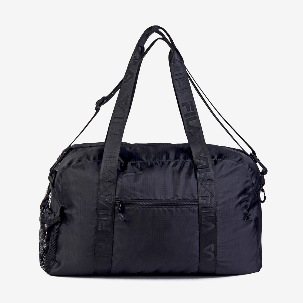Bolsa de viagem, confeccionada em tecido com toque agradável. Possui uma dobra estilosa com fechamento em zíper e puxador em metal F-Box. A dobra possui botão magnético para fechamento junto ao painel da frente para melhor ajuste. O modelo traz também correias personalizadas para as alças de mão com fechamento em velcro e alças removíveis nas laterais. Conta com bolso lateral com fechamento em fivela fidlock e correia personalizada, outro bolso lateral com fechamento em zíper e puxador em metal F-Box. Logo Fila estampado cor institucional no painel da frente. Forro personalizado Fila.