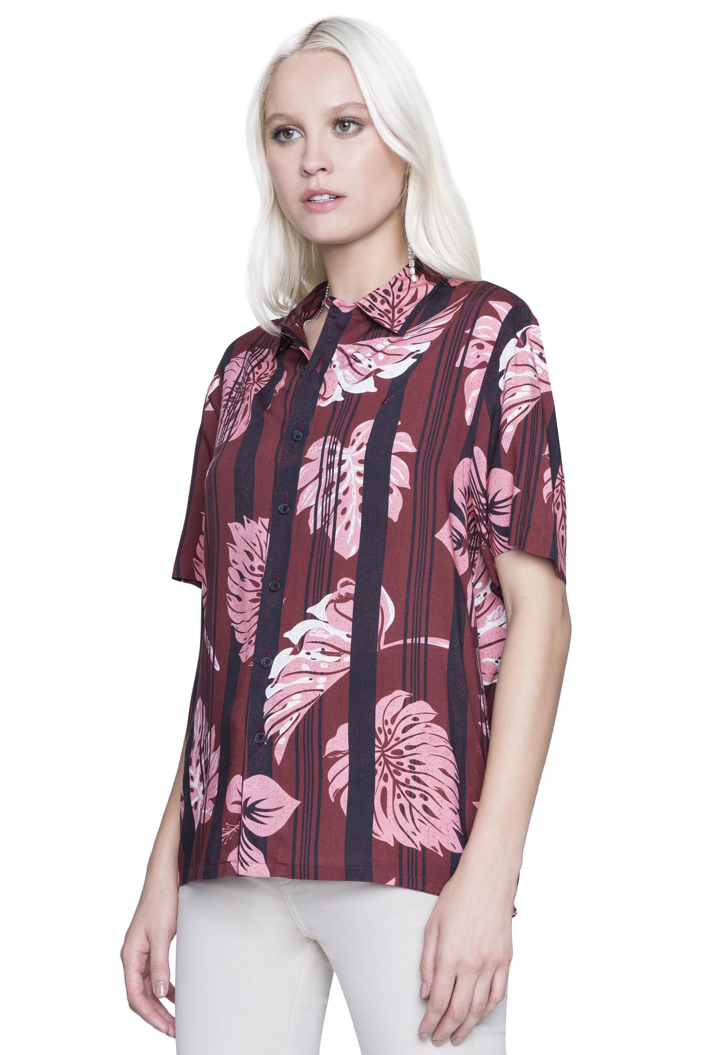 CAMISA ELLUS UNISSEX HAWAII MAXI LEAVES VERMELHA