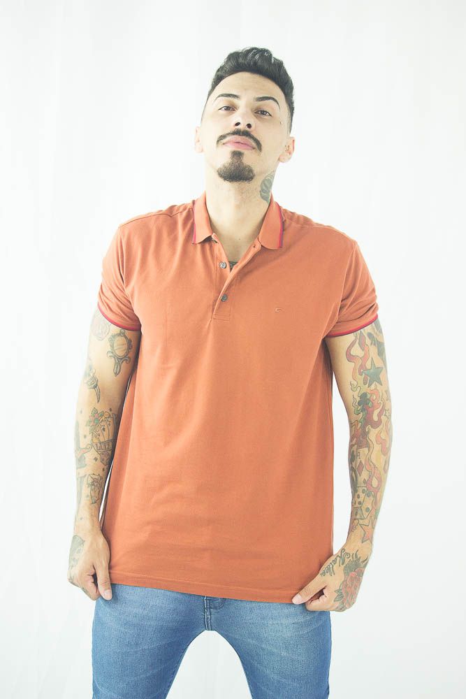 CAMISA POLO PIQUET ELLUS MARROM LOGO