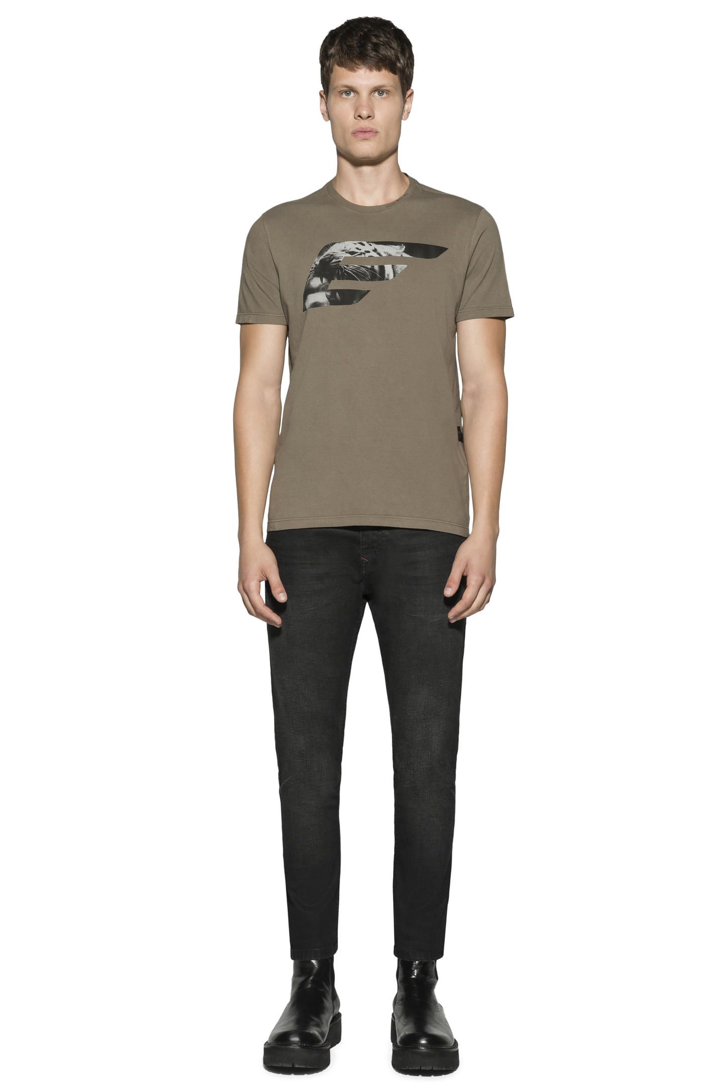 T-shirt confeccionada em malha de algodão com manga curta, gola careca e detalhe em silk localizado na parte frontal.