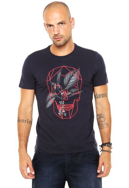 Camiseta Ellus Geo Caveira Azul-Marinho