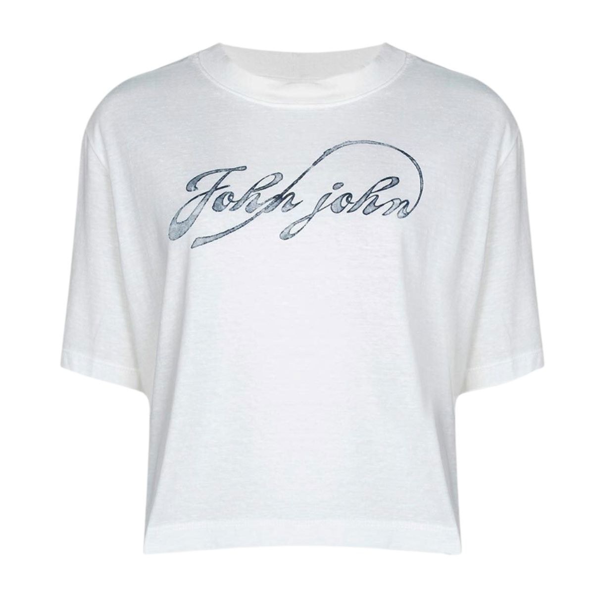 Confeccionada em malha, a Camiseta possui modelagem cropped, gola redonda, mangas curtas, detalhe de estampa frontal e acabamento pespontado.