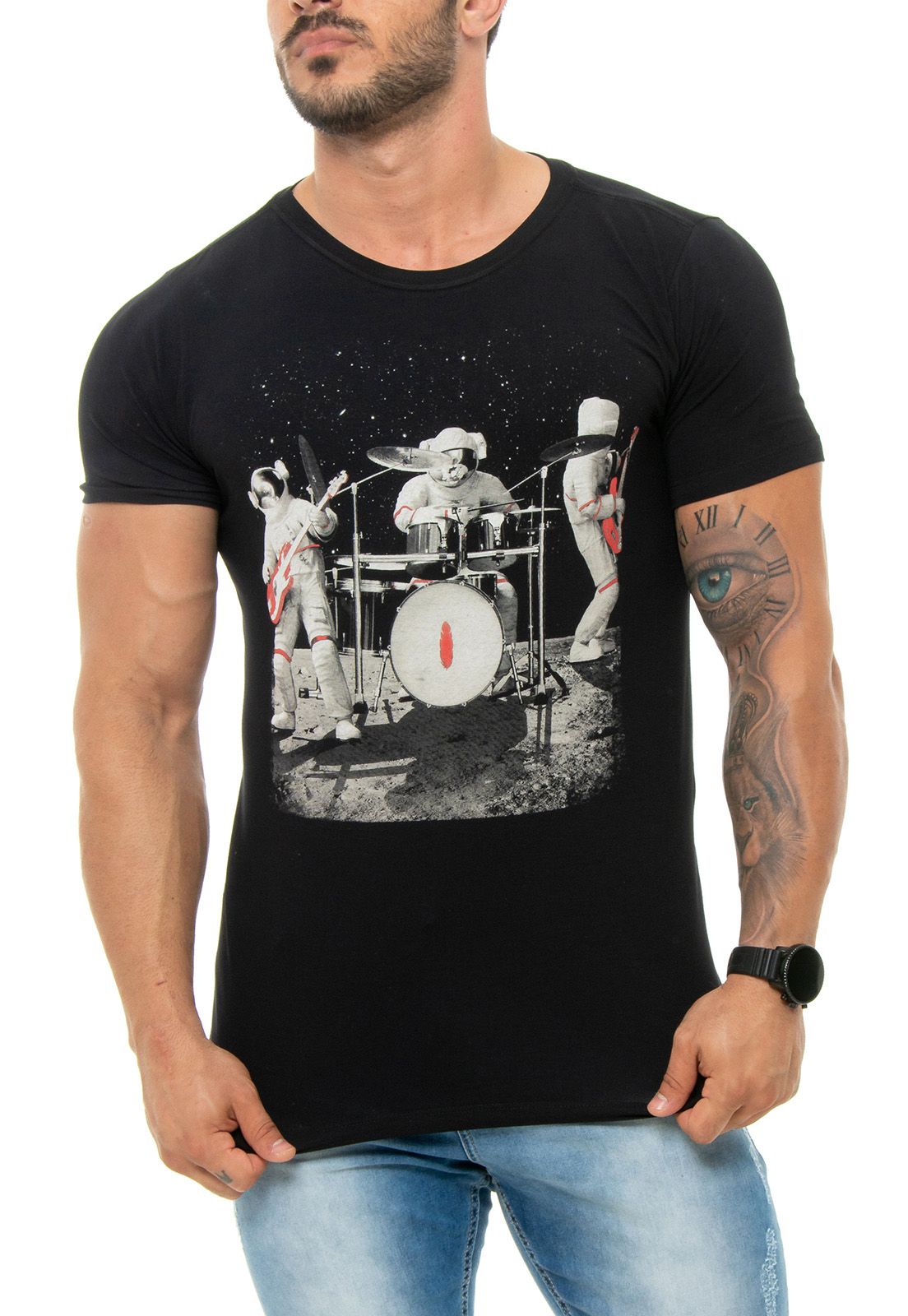 quela canja na lua com astronautas tocando um bom e velho rock à luz das estrelas que brilham no escuro (sim, deixe sua camiseta exposta à luz um pouco de depois leve ela para o escuro e verá a mágica acontecer.