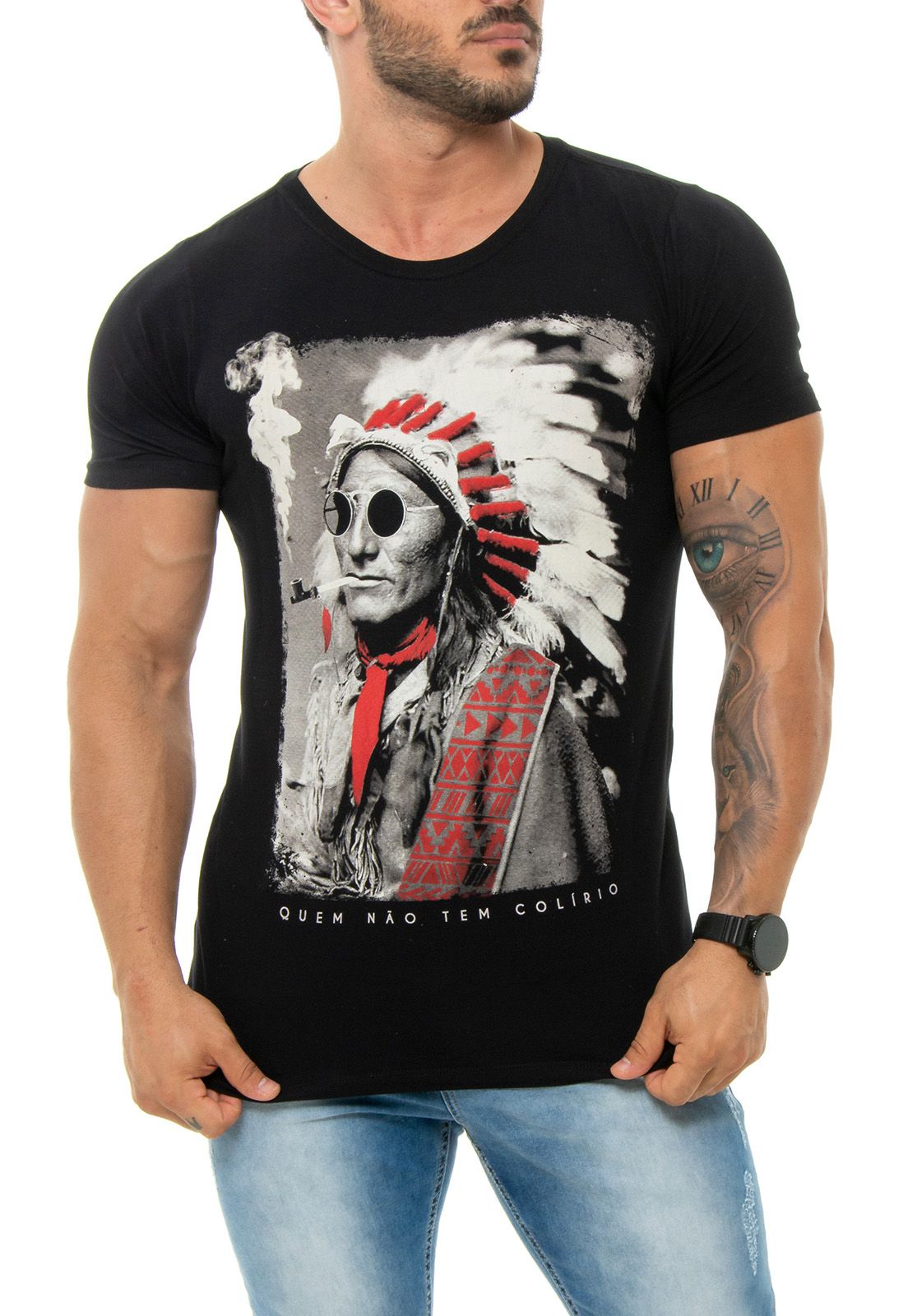 CAMISETA RED FEATHER QUEM NÃO TEM COLÍRIO MASCULINA PRETA