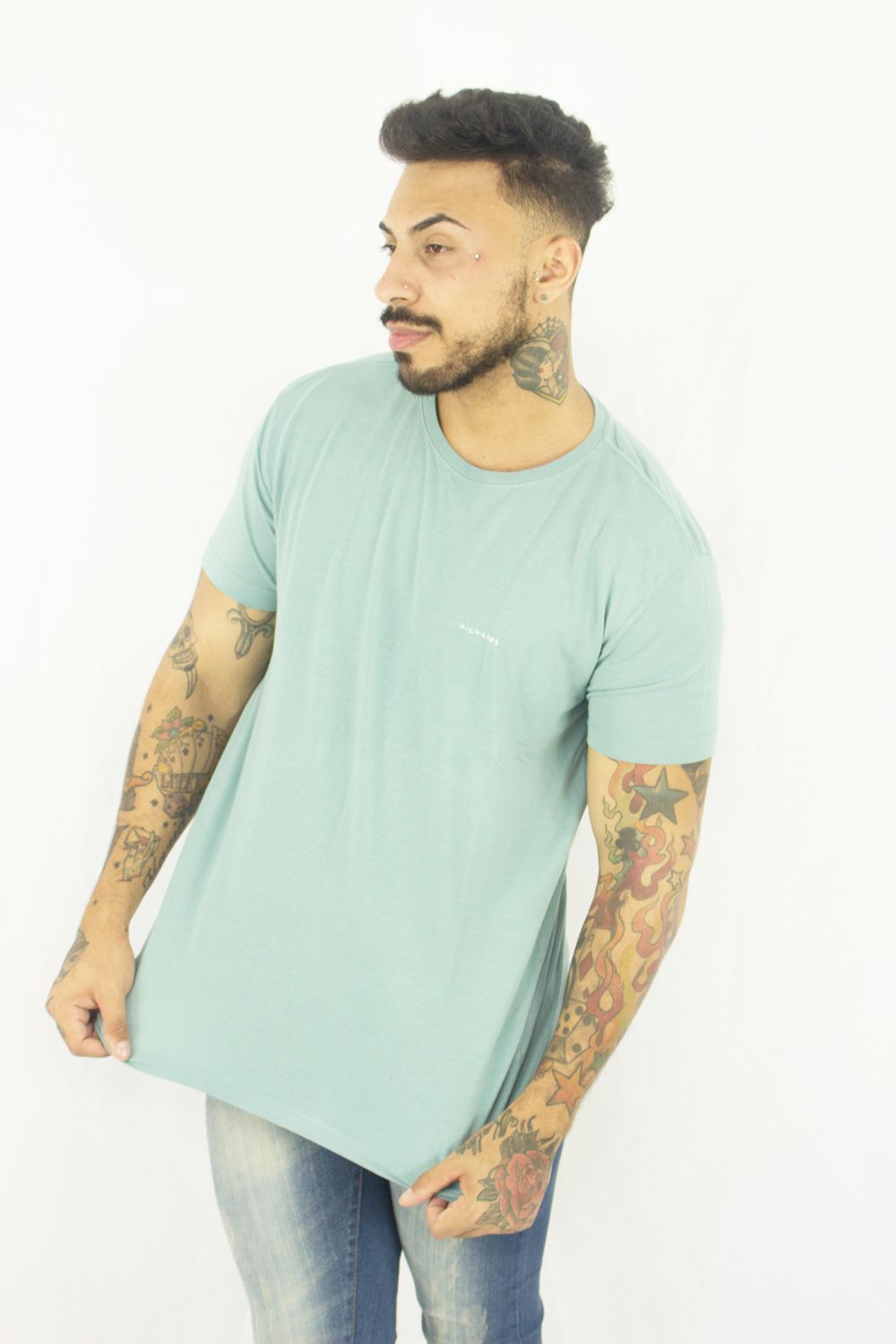 Camiseta branca confeccionada em malha. Peça possui caimento reto, decote redondo com acabamento canelado canelado, mangas curtas, estampa frontal localizada na altura do tórax e acabamento pespontado.