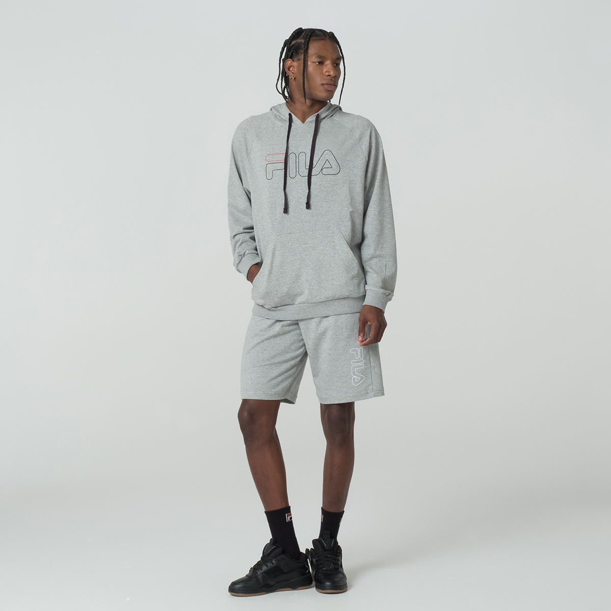 Casaco Fila Com Capuz Letter Outline Masculino Cinza