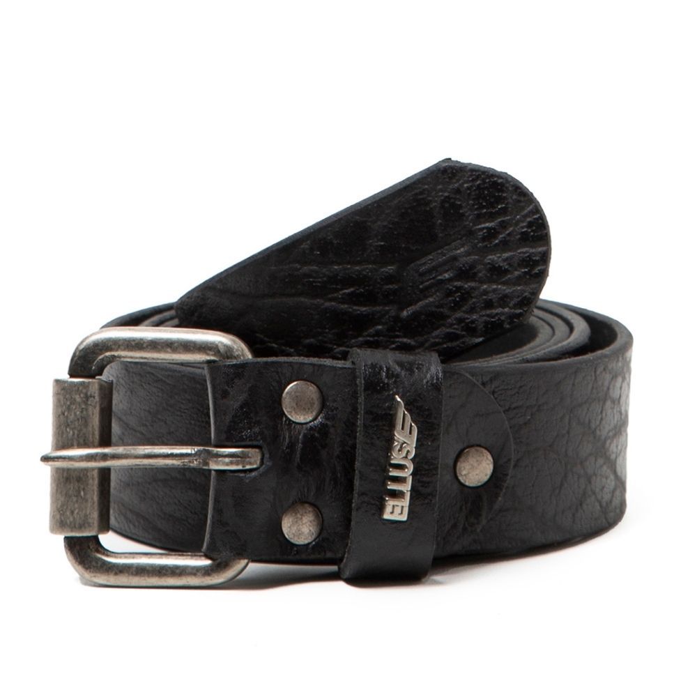 O cinto é produzido em couro. A peça possui fechamento por fivela de metal, tag da marca aplicada, detalhe de textura e acabamentos pespontados.