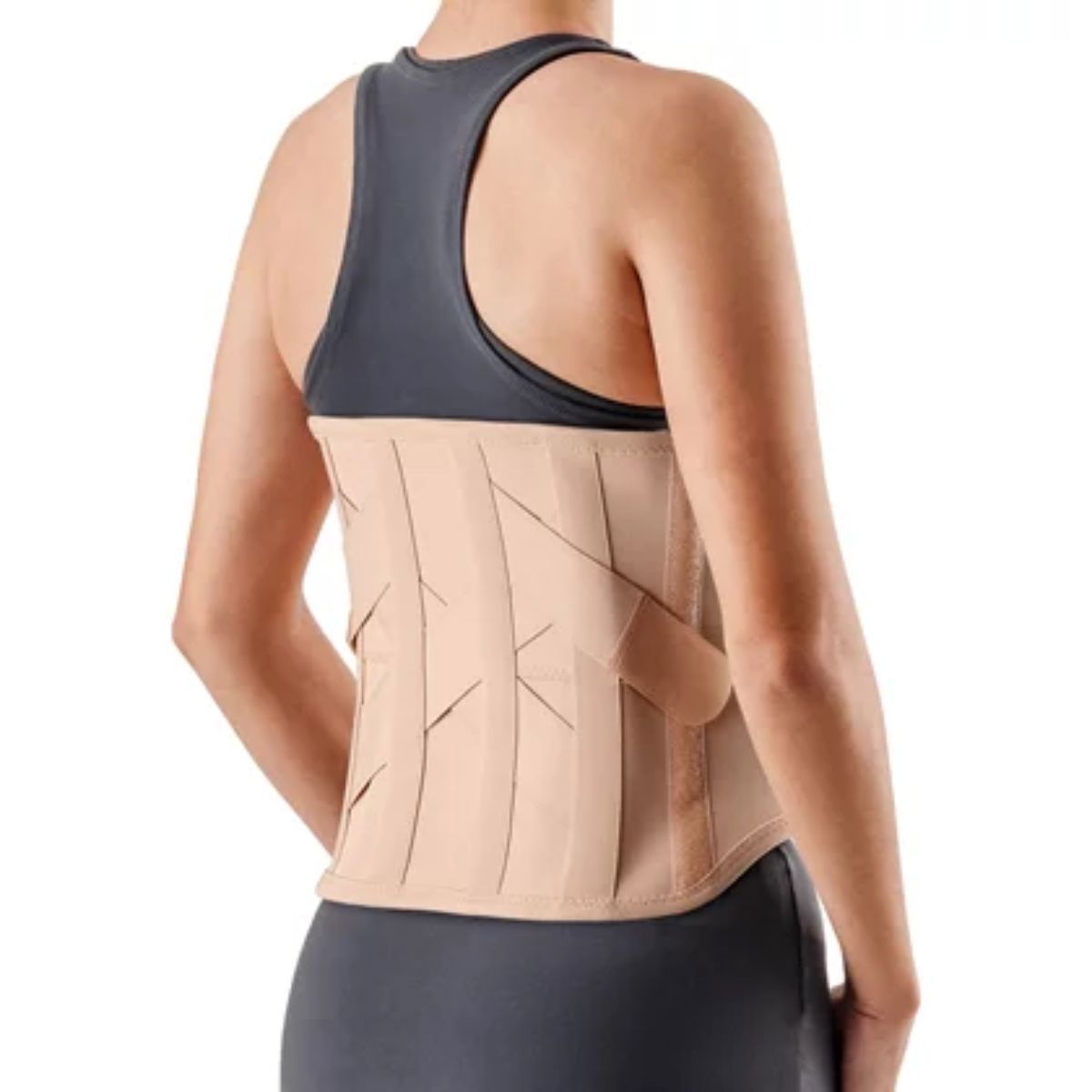 Posicione o colete em torno da região toracolombar (região abaixo do peito e lombar), com o fechamento posicionado para frente. Forneça compressão adequada e confortável através do fecho aderente.