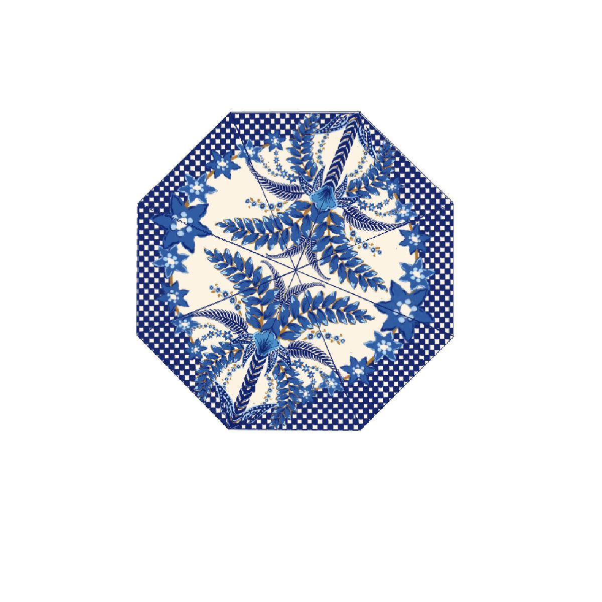 Guarda-Chuva estampado, estrutura em metal, pegador em plástico e alça com miçangas. Diâmetro: 95cm