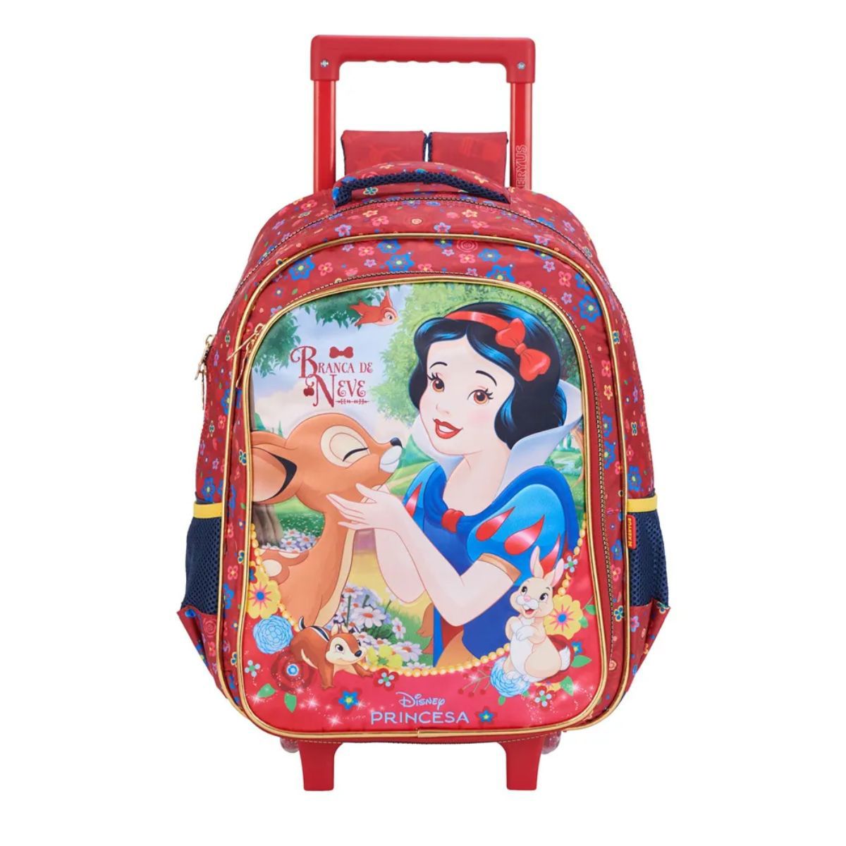Inspirada na doçura e delicadeza da Branca de Neve, essa Mochila com Rodinhas é perfeita para acompanhar as pequenas em suas aventuras escolares ou passeios, com organização e um toque mágico de conto de fadas.
