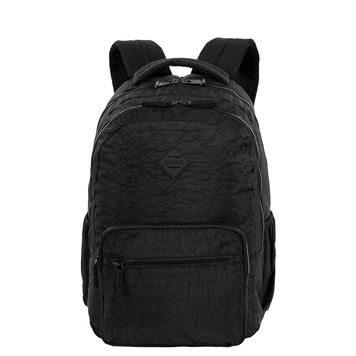 Mochila 2 Compartimentos Sestini College Crinkle 3 - Preto produzida em nylon, possui 2 compartimentos, alças e costas espumadas, alças reguláveis, alça de mão, bolso frontal com zíper, bolso escondido nas costas, bolsos laterais com elástico e bolso para celular na alça.