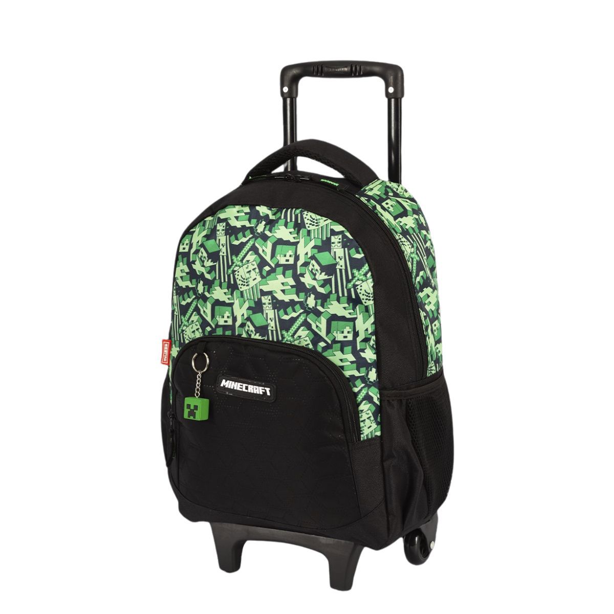 A mochila de rodinhas do Minecraft chegou para deixar o momento de aprendizagem mais divertido e dinâmico! Ideal para os aventureiros, traz um design radical e é licenciada oficialmente pelo jogo favorito da garotada. Conta com um amplo compartimento interno para organizar cadernos, pastas, estojos e mais, sem preocupação com falta de espaço. O bolso frontal, prático para pequenos objetos, vem com um chaveiro exclusivo de Creeper!
