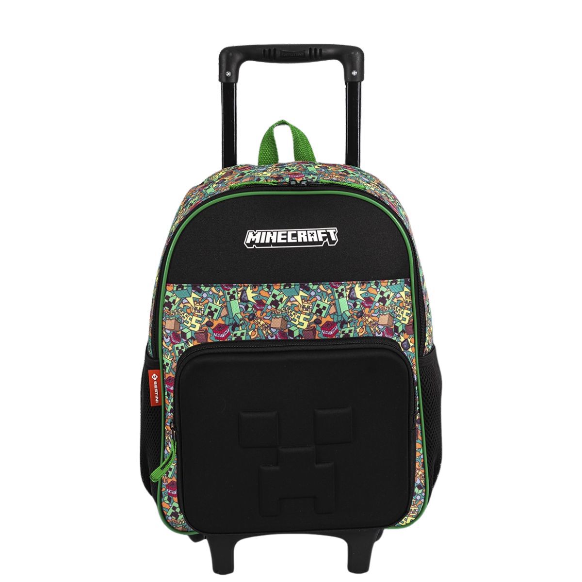 Ligue o modo "criativo" e explore a rotina de estudos com a mochila de rodinhas Funtage do Minecraft! O tecido é coberto por um mosaico com os elementos do jogo que é o maior sucesso entre os jovens e crianças. Espaçosa, conta com um compartimento, bolsos laterais em elástico para garrafinha, e um bolso frontal com a face de Creeper em 3D! Enquanto isso, o carrinho de rodinhas permite que o seu pequeno aventureiro desbrave o dia a dia na escola da melhor forma!