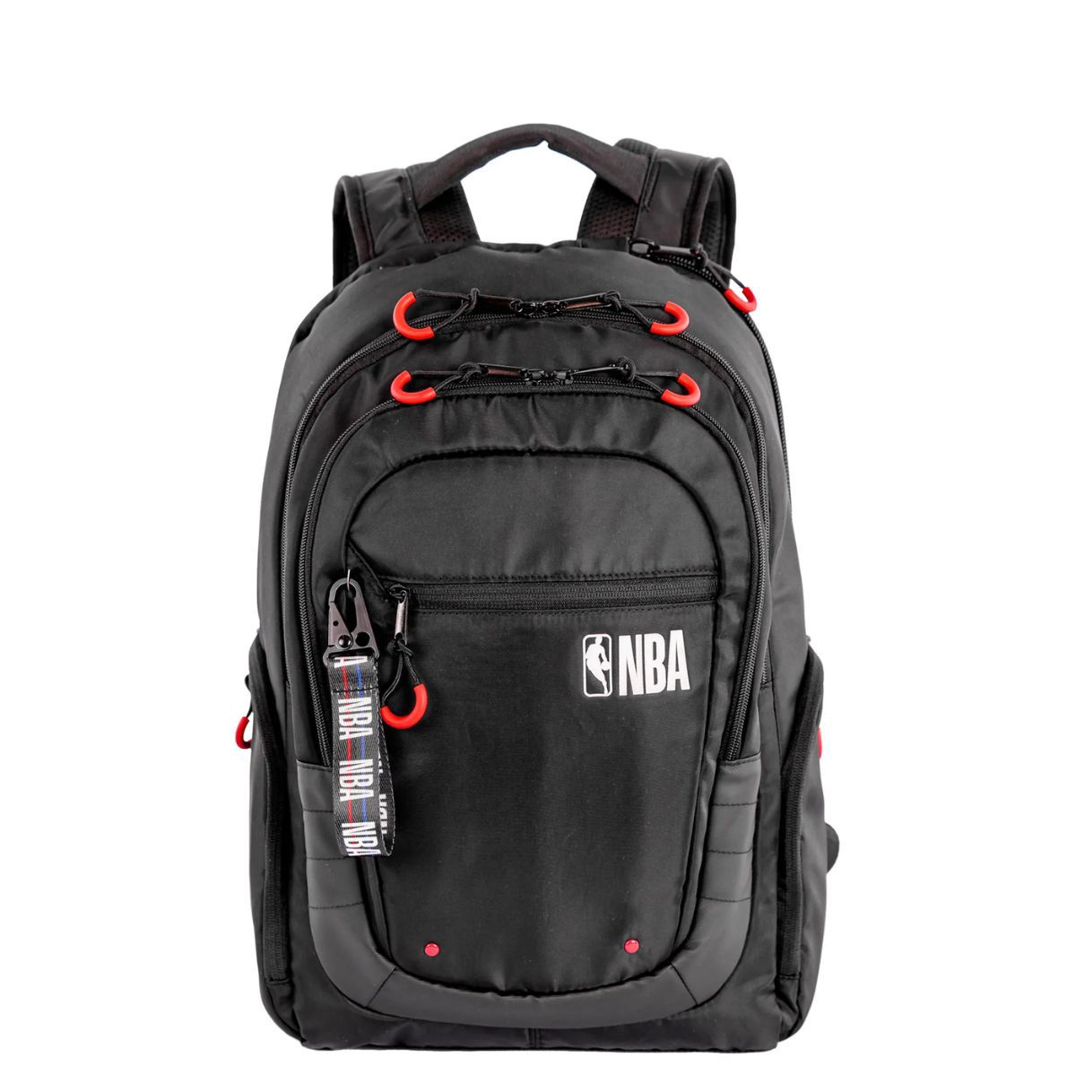 Mochila Grande 3 Compartimentos Notebook Nba Pro - Preto produzida em nylon, possui compartimento acolchoado para notebook 17 polegadas, bolso frontal com zíper, tira peitoral ajustável e muito mais.