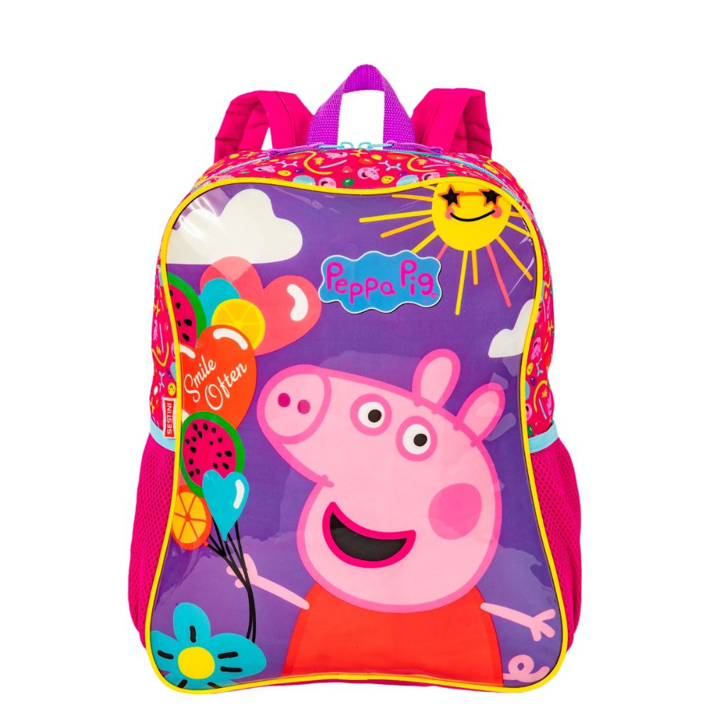 A porquinha mais amada do mundo agora está estampada na sua Mochila da Sestini, em um painel em PVC, fácil de limpar. Seu compartimento é espaçoso e os bolsos laterais em redinha permitem que você leve sua garrafinha. Para maior conforto, a Mochila Peppa Pig conta com alças de costas regulaveis.