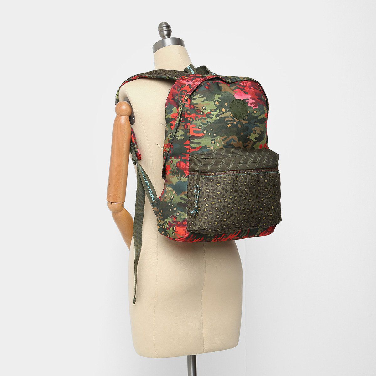 Trazendo estampa florestal, a Mochila Farm Xodo Leopardo Camuflada é perfeita para acompanhar looks do dia a dia. Confeccionada em poliéster, tem bolso externo com zíper, alças reguláveis e aplique da marca.