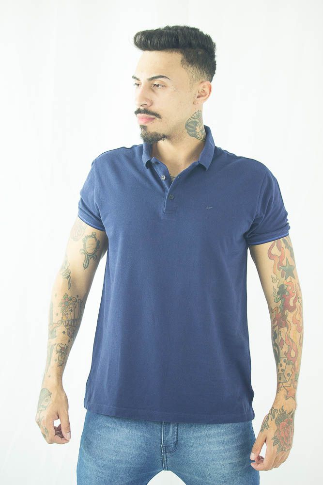 POLO ELLUS PIQUET AZUL MARINHO EASA LOGO MARCA