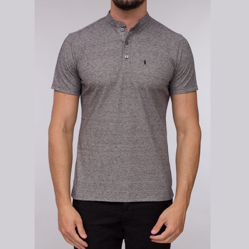 Polo Red Feather Gola à mão Botone Cinza e Preto