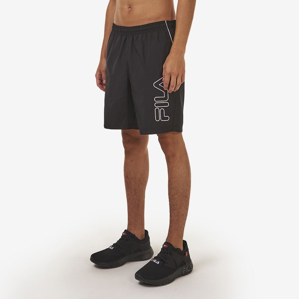 Bermuda masculina confeccionada em tecido plano de poliéster. Modelagem regular. Seu tecido contém a tecnologia FLOW, que proporciona rápida secagem, mantendo o corpo na temperatura ideal para a prática esportiva. Possui cós tombado com elástico e amarração interna com cordão de ajuste, bolsos laterais com acabamento de vivos contrastantes e maxi logo Fila Letter Outline vertical estampado na lateral esquerda próximo à barra. Comprimento total: 48 cm. | Entrepernas: 19 cm.