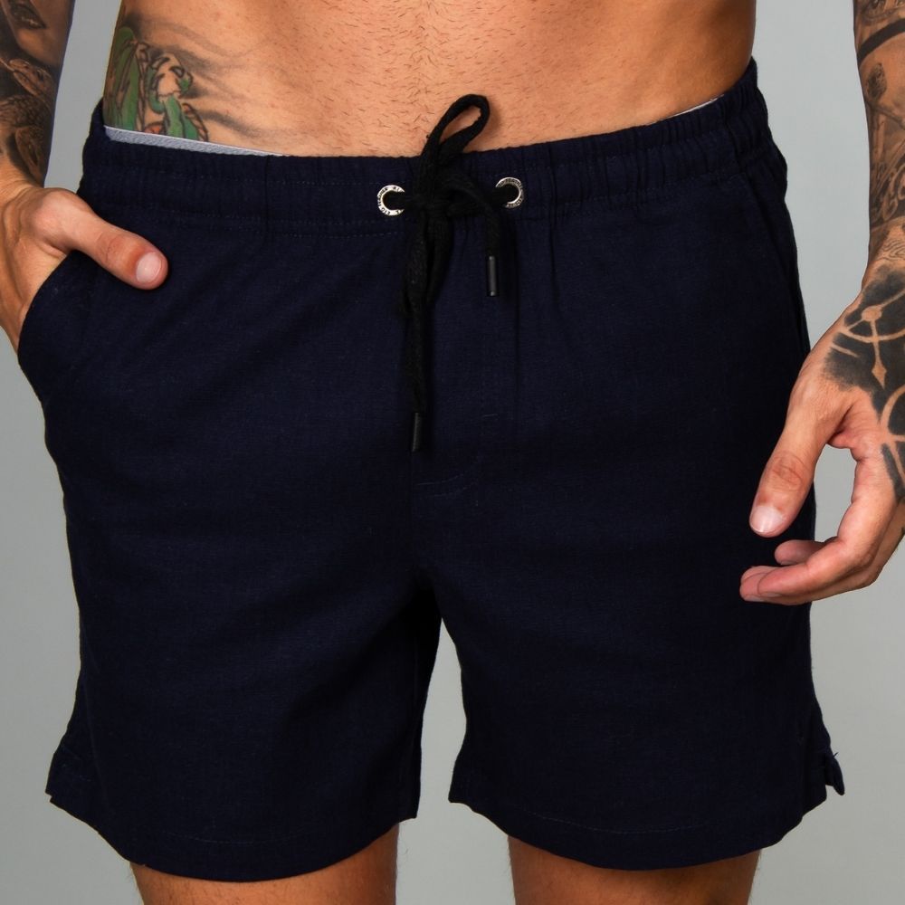 Bermuda Red Feather Linho Masculina Azul Marinho