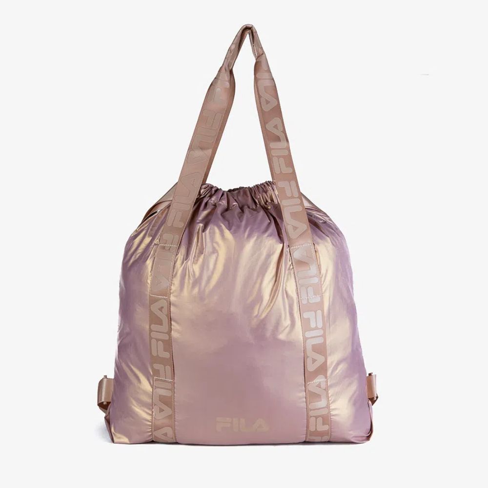 Bolsa de ombro confeccionada em poliamida na variante lisa e poliéster na variante metalizada. Possui alças de ombro personalizadas com Fila Letter, alças reguláveis nas costas que permite o uso como mochila, compartimento principal com fechamento tipo saco e logo Fila Letter na parte frontal inferior. Dimensões (L X A X P): 42 cm X 50 cm X 10 cm. Capacidade: 21 L.