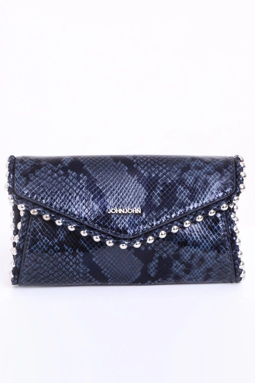 Minibag viper animal print, preto azulado, envernizado e modelo carteira, possui detalhe em mini ball metalizada por toda a extremidade da peça, fechamento por lapela e botão magnético, além de alça tiracolo removível também no animal print preto azulado. *as peças podem variar a estampa de acordo com o corte. *a tonalidade das cores pode variar de acordo com o seu tela/monitor.