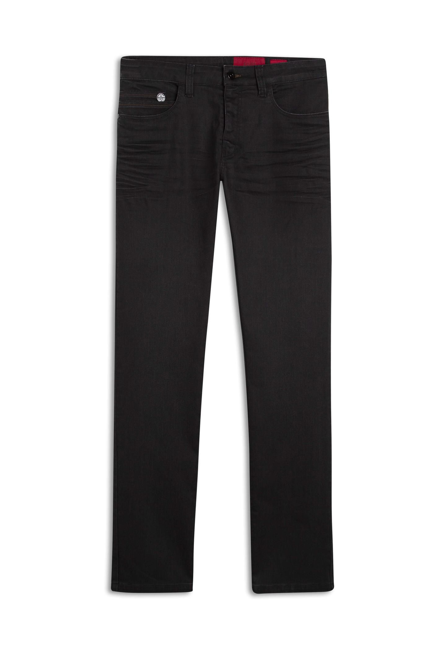 Modelagem super slim na cor preto e costuras em preto, calça super confortável para quem curte um caimento tradicional.
