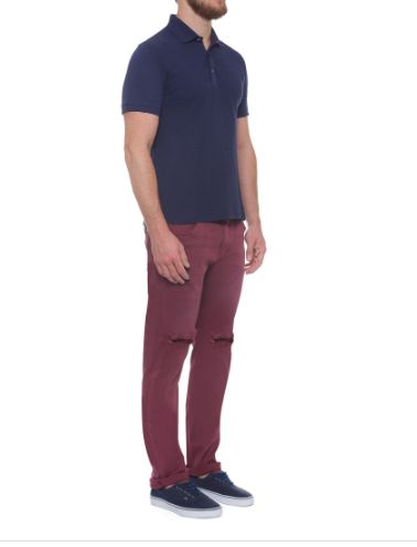 Perfeita para uma produção casual, a calça destroyed John John pode ser combinada com polo e tênis estruturado. Confortável e despojada, o look ganha um toque street.