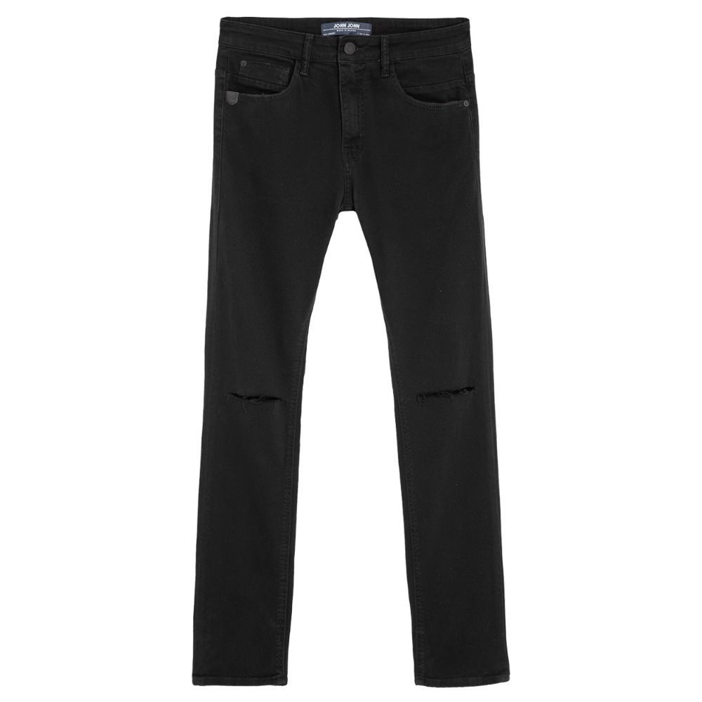 Confeccionada em jeans com lavagem escura, a calça possui cós com passantes, fechamento frontal por zíper e botão, bolsos frontais e posteriores, modelagem skinny e acabamento pespontado.