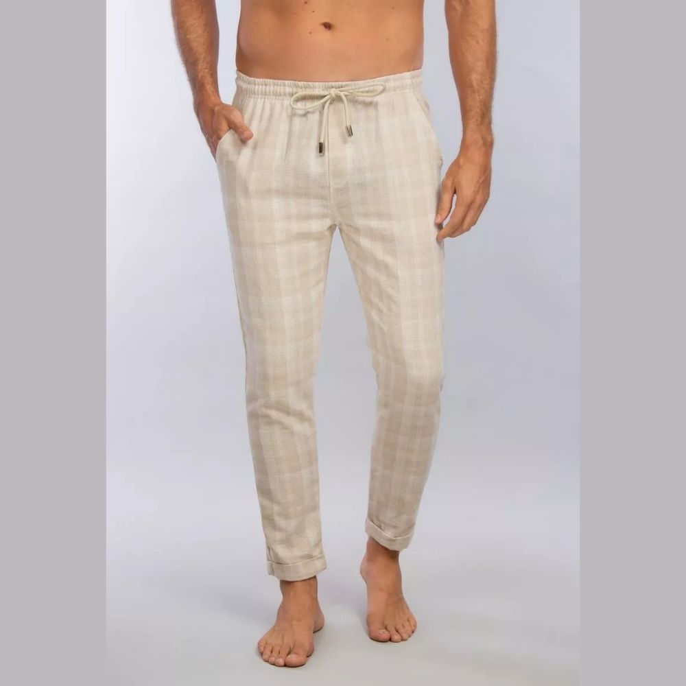 Calça Red Feather Linho Pé na Areia Xadrez Natural