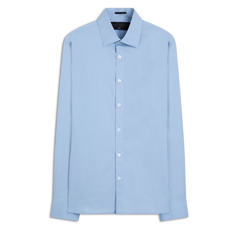 A camisa é confeccionada em tricoline. A peça de modelagem slim possui colarinho curto, mangas longas com abotoamento nos punhos, logo da marca bordado na altura do tórax e fechamento frontal por botão.