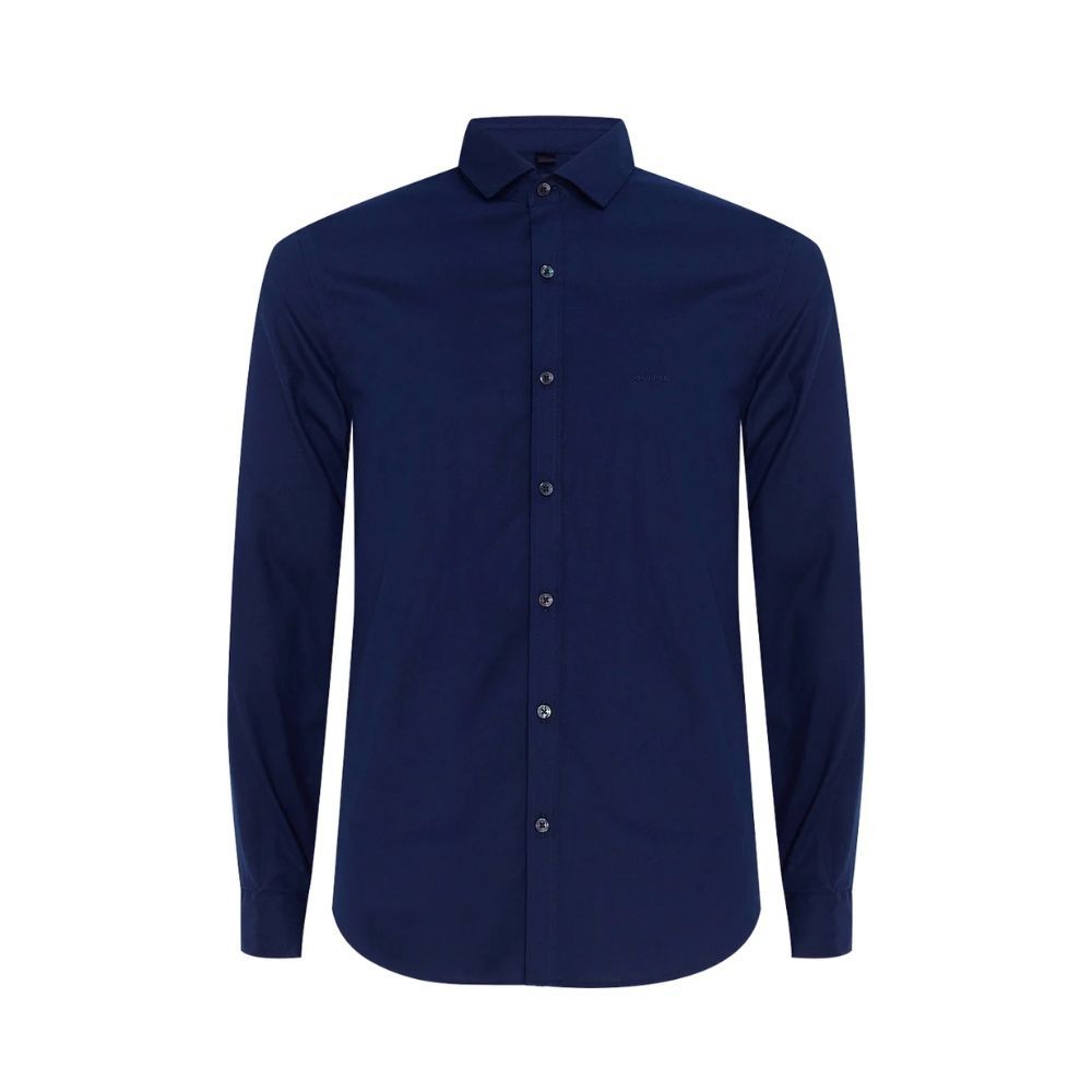 A Camisa é confeccionada em tecido plano com modelagem reta, possui fechamento por botão, manga comprida e logo aplicado frontal.