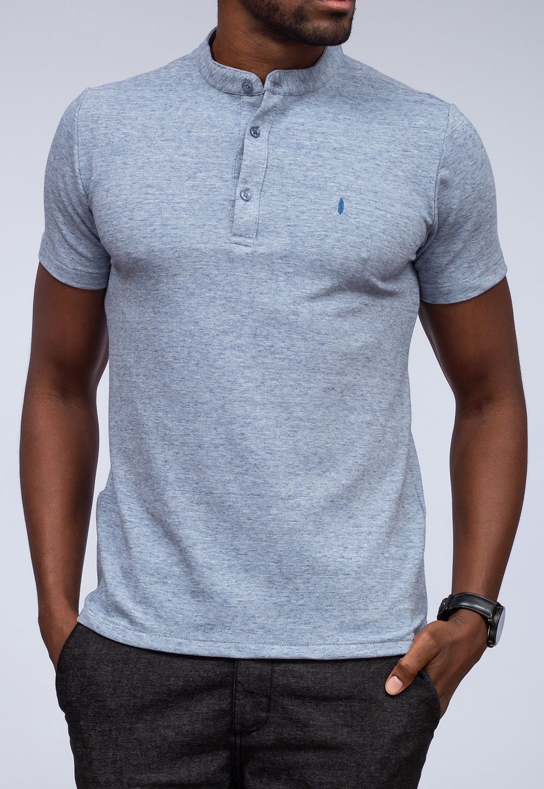 Polo Super ajustada ao corpo, confeccionada em algodão egípcio piquet azul.