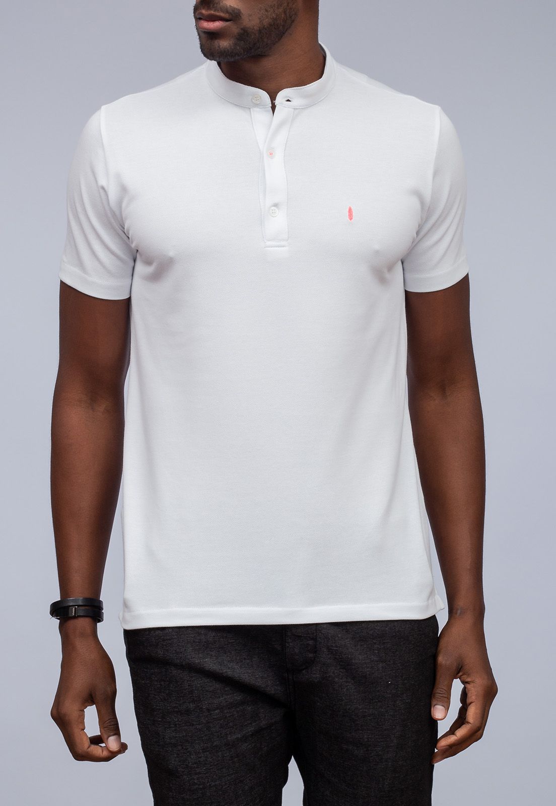 Polo Super ajustada ao corpo, confeccionada em algodão egípcio piquet branco.