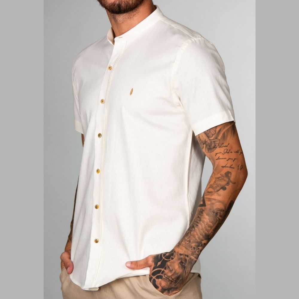 Camisa Red Feather Gola Padre MC Linho Off White