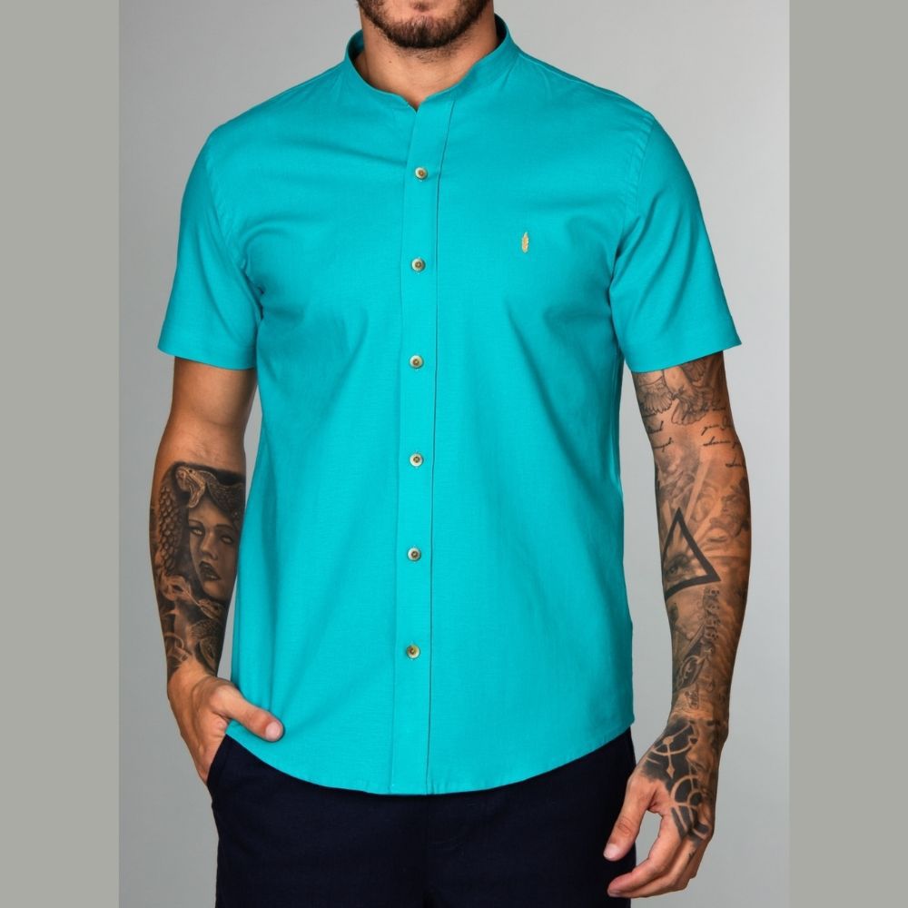 Camisa Red Feather Gola Padre MC Linho Turquesa