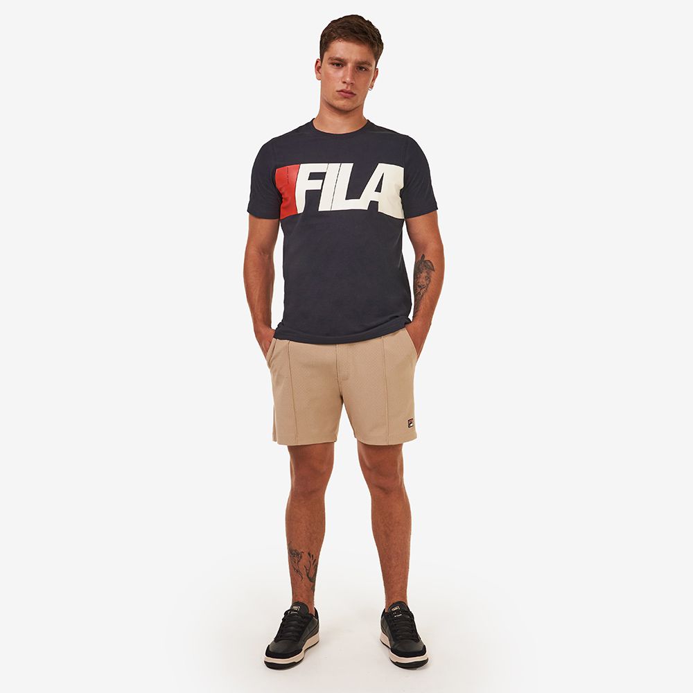 Camiseta masculina confeccionada em meia malha premium de algodão. Modelagem regular com manga curta e gola careca em ribana. As cavas, ombros, barra e gola apresentam acabamento em pesponto. Possui estampa Fila Letter Italic em silk sustentável na parte frontal superior e etiqueta bandeira Fila Letter na lateral esquerda.