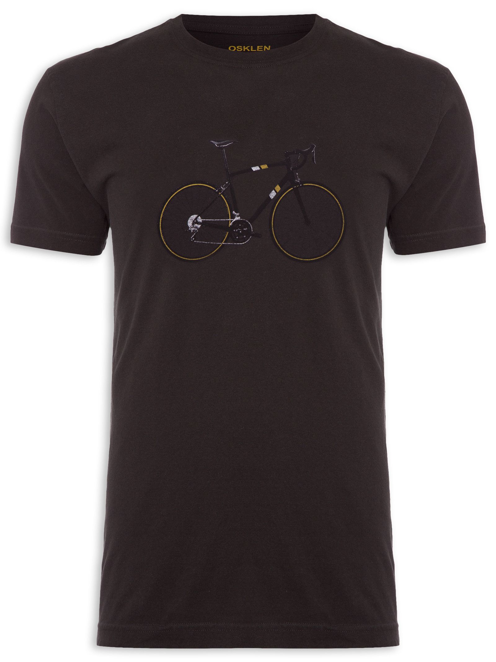 A camiseta cinza é confeccionada em malha de algodão. A peça possui gola redonda com acabamento canelado, mangas curtas, estampa do logo da marca frontal na altura do tórax, caimento reto e acabamento pespontado.