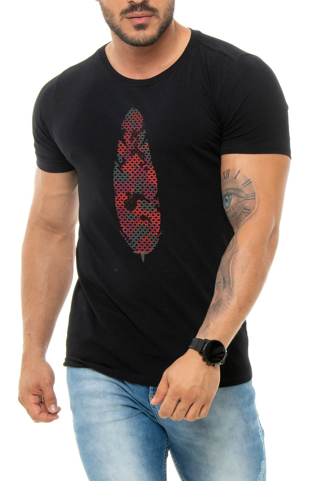 CAMISETA RED FEATHER NEON SKULL MASCULINA