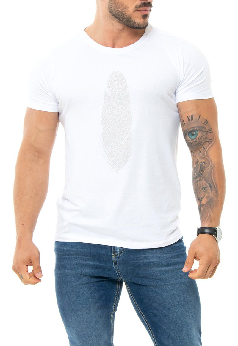 CAMISETA RED FEATHER PENA NOTAS MUSICAIS BRANCA MASCULINA