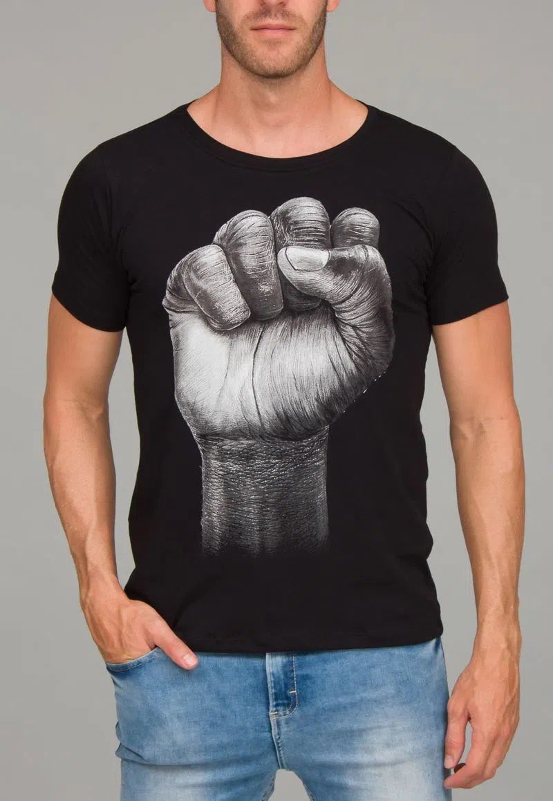 Um punho erguido e serrado se torno um símbolo de resistência que ficou consagrado pelos black panthers na luta anti racial do século passado. Trazido à tona novamente nos movimentos de black lives matters, esse gesto representa séculos de luta por igualdade e equidade.