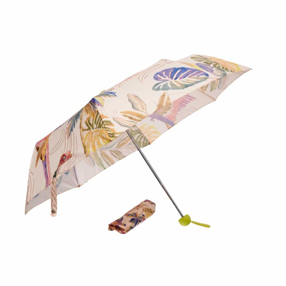 Guarda-Chuva estampado, estrutura em metal, pegador em plástico e alça com miçangas. Diâmetro: 95cm