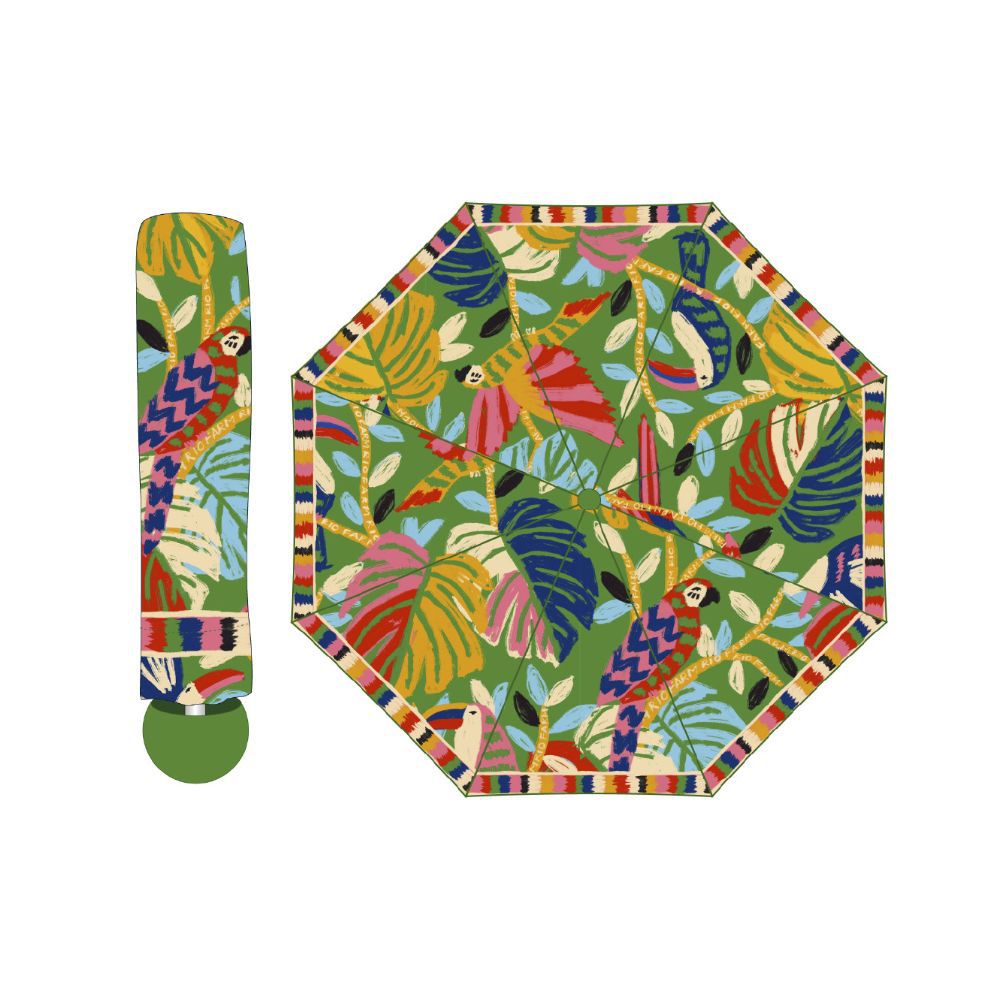 Guarda-Chuva estampado, estrutura em metal, pegador em plástico e alça com miçangas. Diâmetro: 95cm