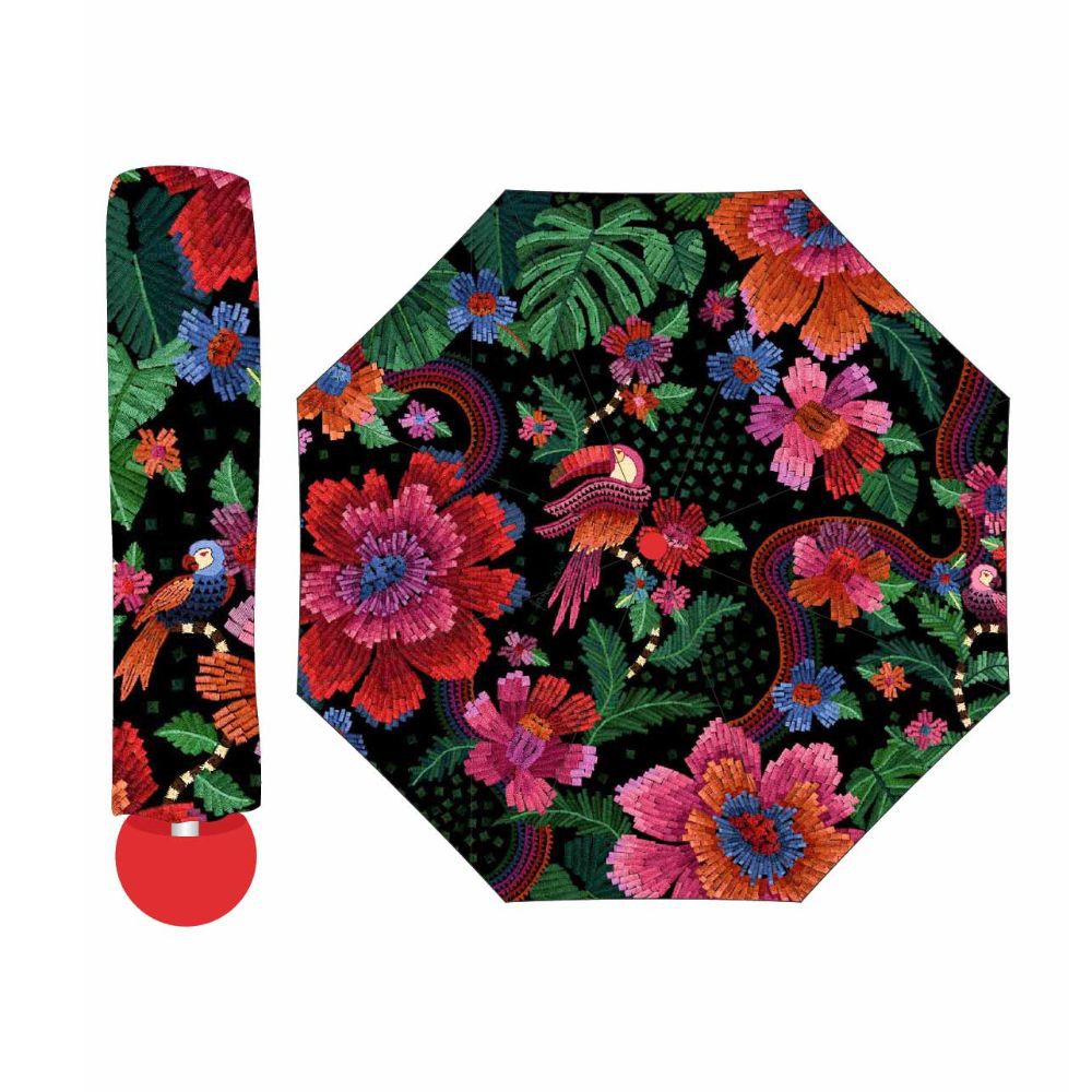 Guarda-Chuva estampado, estrutura em metal, pegador em plástico e alça com miçangas. Diâmetro: 95cm
