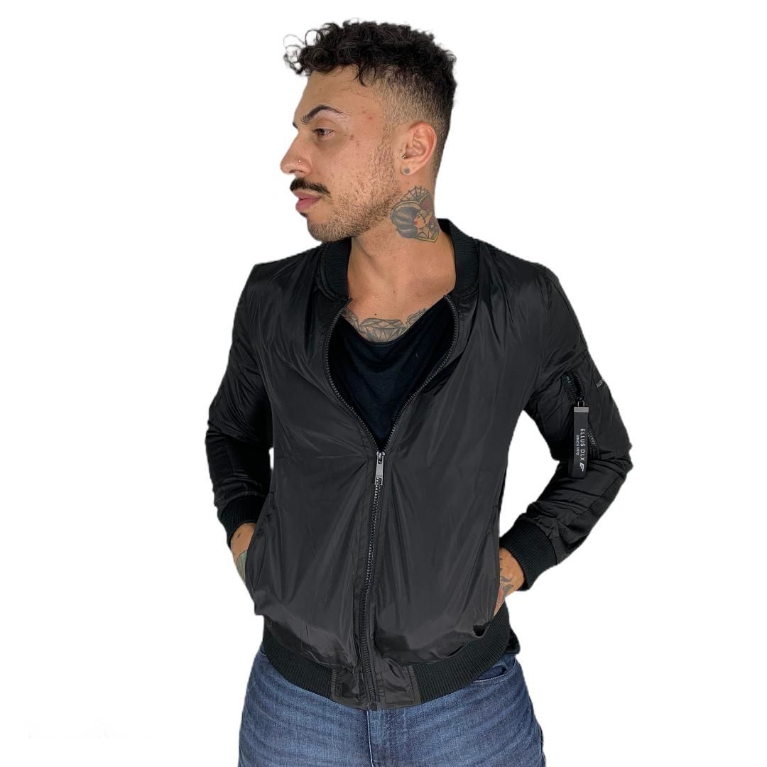 Jaqueta Ellus Thin Ribboned Sleeve Bomber Jack preto masc