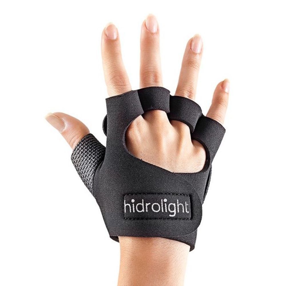 Posicione o produto na mão encaixando os dedos nos orifícios. Ajuste a compressão desejada através da aba com fecho aderente no dorso, mantendo a parte emborrachada (shark skin) na região da palma.