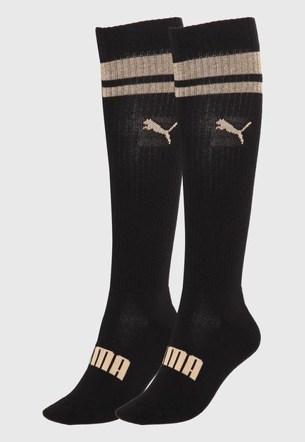 Possui algodão penteado, calcanhar verdadeiro, sola atoalhada e detalhe com brilho metalizado.