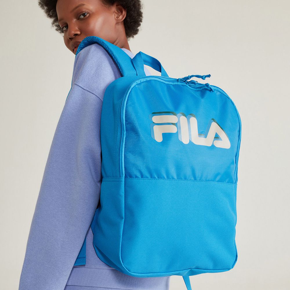 Logo fila na parte frontal com 3 cores e logo F na alça.