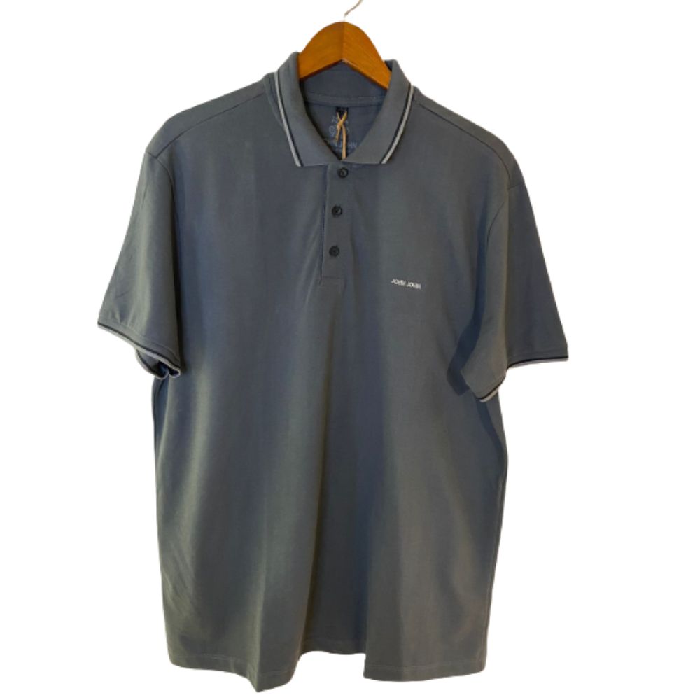 Confeccionada em malha, a Polo possui modelagem reta, gola clássica, fechamento frontal com vista interrompida por botões, mangas curtas, detalhe de recorte bicolor, bordado com inscrição da marca e acabamento canelado.